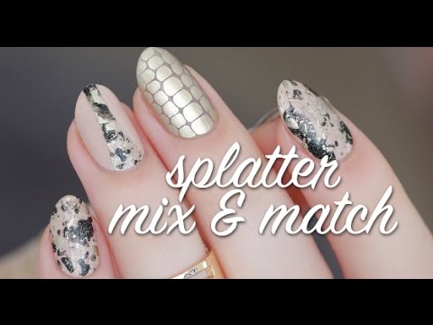 Hello everyone! This is a design I created recently featuring blobbicure & splatter techniques, in a really simple but elegant nude, black, and gold combination. I really hope you all like it!