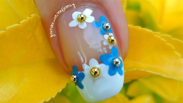 Have a very classy nail art with this french manicure with studded flowers with this easy steps.
