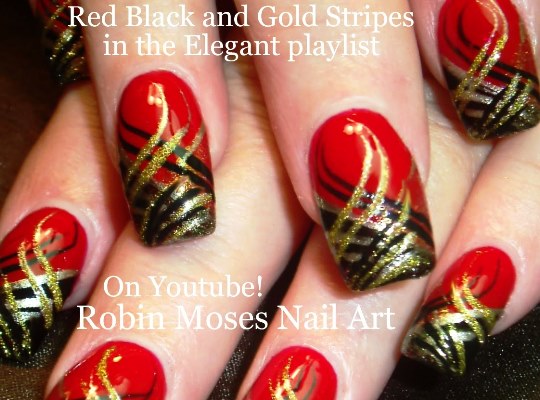 Subscribe! Nail art Tutorials straight from my shop 3 times a week!!! Here are Red Nails with Stripes! Black and Gold Nail Design tutorial! a perfect nail art tutorial for anyone who loves a dramatic nail design!