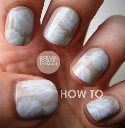 How To : Hand Painted White Feather Nail Art