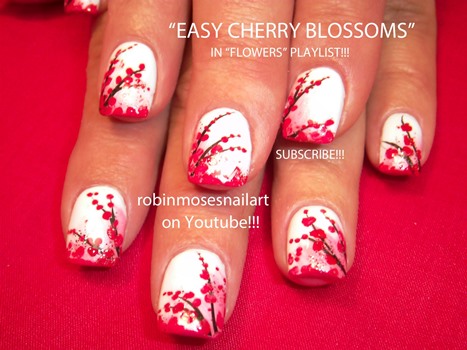 Sweet Red Cherry Blossoms Nail Art Tutorial