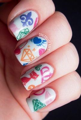 Let these trendy and colorful nail tattoos make you the diva! Diamonds, hearts, a cat and a crown, these nail tattoos have it all.