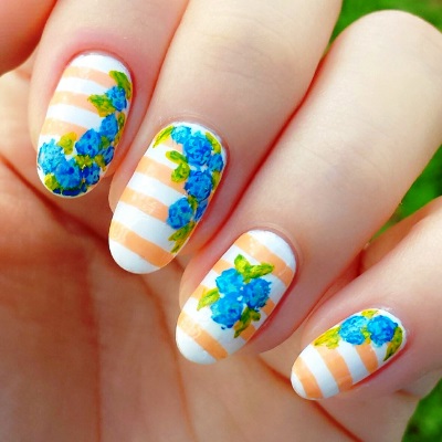 Wild Flower and Stripes Nail Art Ideas and Tutorial